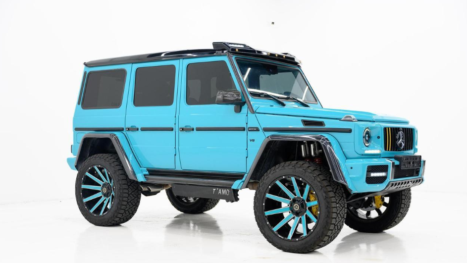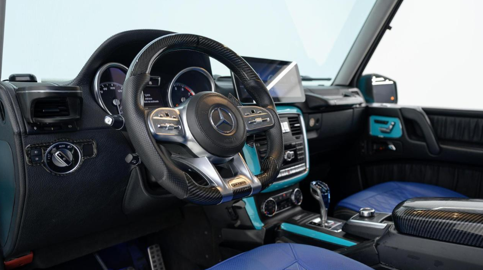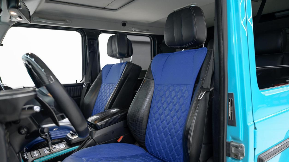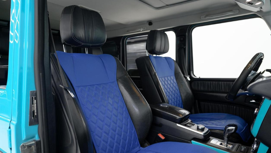 2013 MERCEDES-BENZ G-CLASS G 550 SPORT UTILITY, AWD 7-speed G-TRONIC automatic transmission, 5.5L DOHC 32-valve V8 engine, Interior is black with blue seat covers.